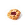 Deepfrozen Danish dough, square pastry with cream cheese filling (11.5%) strawberry filling (18.5%), decorated with glazing (1.5%), ready-to-bake